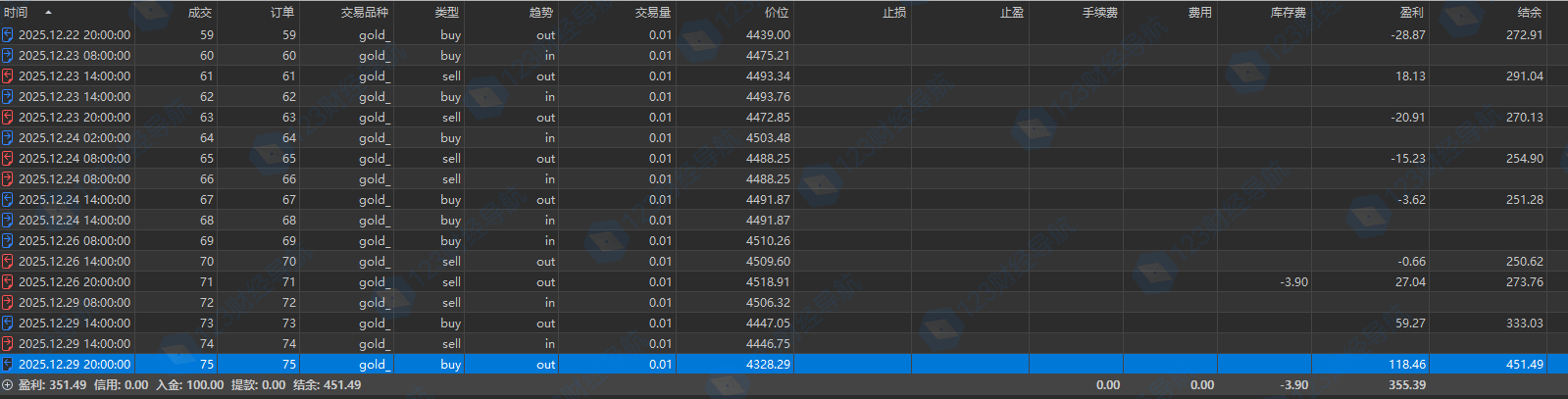 12.29黄金大跌250刀,goldtime两次0.01吃了近200刀。