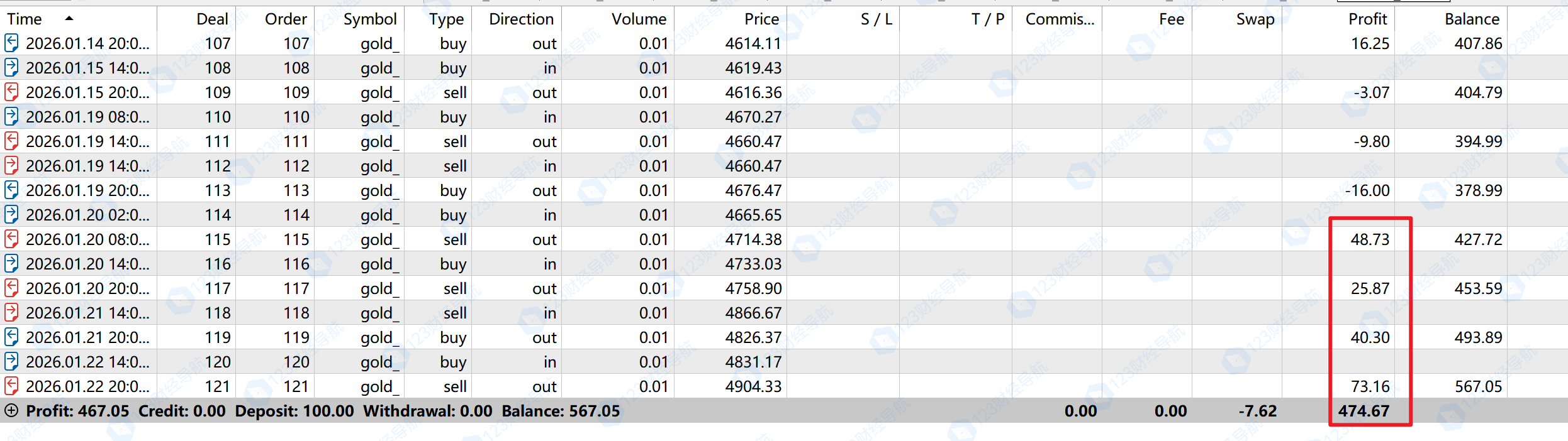 2026.1.22 当日1笔0.01,盈利73刀