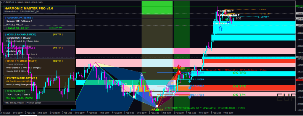 大白EA宝库:三步共振确认法!HarmonicMasterProV5Indicator一键锁定蝴蝶/蝙蝠/螃蟹高概率反转区MT4指标
