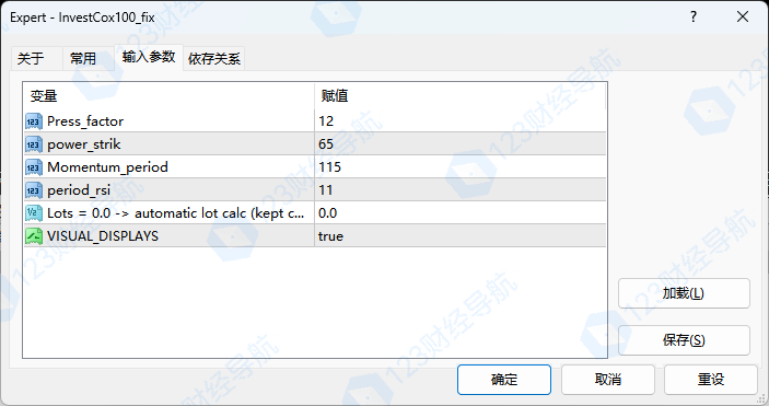 参数中的 Momentum_period 设置为 115。这是一个非常关键的参数设置。不同于常见的短周期(如14),115周期的动量指标意味着该EA具备极强的抗噪能力。它能够忽略短期市场的随机波动,精准锁定中长期的主要趋势方向,确保每一笔交易都顺势而为,从根本上提高了胜率。