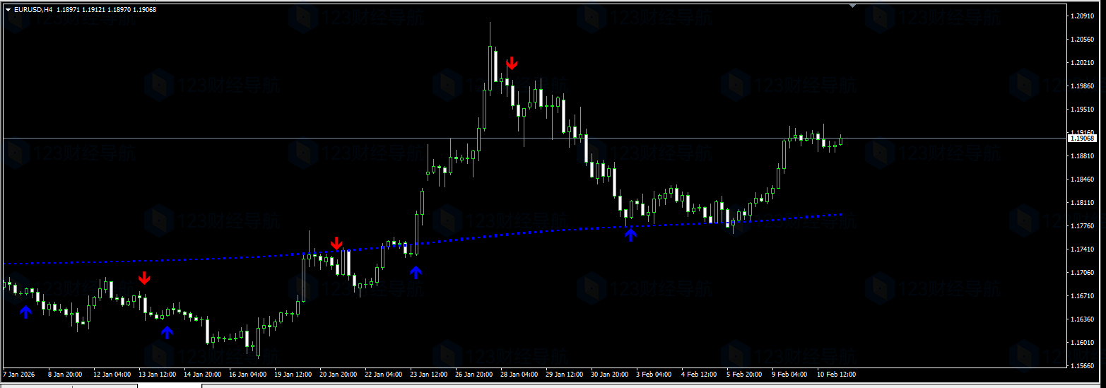 • 弱信号: 如果价格离趋势虚线太远时才出现箭头,说明行情可能已经走了一大半,此时入场风险较高。