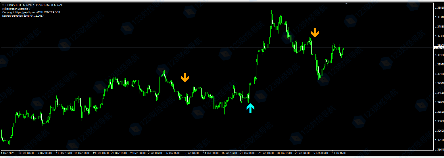 Million Trader Indicator 是一款典型的“信号辅助”工具。它的优势在于极简——你不需要去数波浪或画趋势线,只需要盯着箭头颜色。
